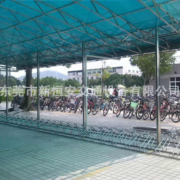 不銹鋼自行車(chē)停車(chē)架車(chē)棚安裝好實(shí)物圖:
