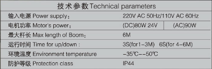 二、停車場道閘產(chǎn)品參數(shù)介紹:
